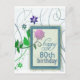 Bright white background with colourful green, blue and pink flowers with Happy 80th Birthday in blue text. Perfect design for the 80th birthday party ... cards, postage, hats, stickers ... make it special!