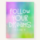 Fun and modern motivational design featuring the text "Follow Your Dreams" in quirky lettering on a colourful rainbow gradient background. Add your name in matching lettering.