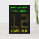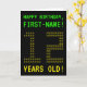 The front of this geeky, customizable birthday card design features the messages "HAPPY BIRTHDAY" and "12 YEARS OLD!", along with a editable recipient name. The messages on the front have a pixelated, vintage video game style look. The digits of the large number "12" on the front consist of smaller sized digits "1" or "2", giving an ASCII art inspired look. The inside features a customizable birthday greeting message. A nerdy style, customized birthday greeting card like this might be a fun way to celebrate somebody’s twelfth birthday. [~Z0000366]