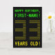 The front of this geeky, editable birthday card design features the messages "HAPPY BIRTHDAY" and "33 YEARS OLD!", along with a customizable recipient name. The messages on the front have an appearance inspired by pixelated vintage computer games. The digits of the large number "33" on the front are themselves made up of smaller sized "3" digits, giving an ASCII art inspired look. The inside features a personalized birthday greeting message. A nerdy style, personalized birthday greeting card like this might be a fun way to send birthday wishes to somebody who is celebrating their 33rd birthday. [~Z0000366]