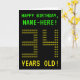 The front of this geeky, customizable birthday card design features the messages "HAPPY BIRTHDAY" and "34 YEARS OLD!", along with a personalized recipient name. The messages on the front have an appearance inspired by pixelated retro computer games. The digits of the large number "34" on the front consist of smaller sized "3" or "4" digits, giving an ASCII art inspired look. The inside features a customizable birthday greeting message. A nerdy style, customized birthday greeting card like this might be used to send a birthday greeting message to somebody who is celebrating their thirty fourth birthday. [~Z0000366]