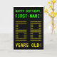 The front of this nerdy, editable birthday card design features the messages "HAPPY BIRTHDAY" and "68 YEARS OLD!", along with a customizable recipient name. The messages on the front have a pixelated, vintage video game style look. The digits of the large number "68" on the front consist of smaller sized "6" or "8" digits, giving an ASCII art inspired look. The inside features a personalized birthday greeting message. A geeky style, customizable birthday greeting card like this might be a silly way to send birthday wishes to somebody who is celebrating their 68th birthday. [~Z0000366]