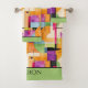 Fun Geometric Abstract in Orange, Green & Purple Bath Towel Set