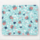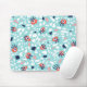 Fun terrazzo mousepad with a geometric seamless pattern with weird eyes on some of the abstract marble stones in coral and blue colours.