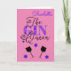 A fun Gin Queen birthday card featuring two black gin glasses surrounded by blue stars, with the wording "The Gin queen" in fancy script with a pale pink background . A fun stylish card to give to Gin lovers ( or anyone really) for any occasion, such as birthdays, or just to say hello. Can be customized by changing the name on the front of the card and the inside can be personalized by amending the event or reason for the card then add your own personal message. A stylish design for any gin lover.