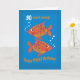 A fun 30th Birthday Card for a Piscean, with two brilliant orange and golden yellow fishes on a bright blue background, from a hand-painted paper collage by Judy Adamson. If you don't see the age you need, you may like to know that there is a custom front version of this birthday card.