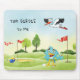 Fun golf mouse pad for golfers. Talk Birdie to me has fun, crazy birds playing golf.