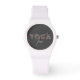 Yoga in style with this fun yoga o'clock graphic watch. Featuring a multicoloured yoga logo graphic on a mid grey background with customizable text