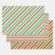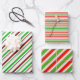 These designs feature Christmas-themed stripes coloured red, white, and green. It might be fun to use wrapping paper sheets like these when wrapping presents being given to celebrate Christmas.