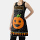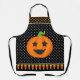 © 2020 Socialite Designs Inc. Fun Halloween pumpkin, with a polka-dot background, and candy corn hemline design apron. If you are expecting a baby, the pumpkin would be great area for your growing bump.