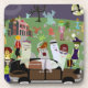 A fun cute retro style Halloween characters October art illustrated monsters, zombies, ghosts and pumpkin pal cartoon graveyard party cheeky funny coaster set. Get some fun Halloween illustration coasters today.
