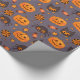 Fun Halloween Pumpkins Pattern Purple Background Wrapping Paper