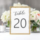 Casual hand lettered style font with swashes on the ends for "table" title. Customize the font colour, size and placement to suit your event. Background colour and backer are also customizable, or add a photo.