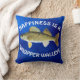 Fun "Happiness Is" Walleye Pike on Blue Throw Pillow