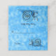 This folded standing place card for your parties, events, and weddings is an abstract pattern in various shades of aqua blue with a fun happy snail with a blue patterned shell and white eyes on the front and back. Customize the name and table number area and text on the back with the templates.