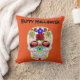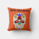Fun Happy Halloween Floral Sugar Skull Throw Pillow