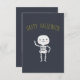 Fun cute Skeleton Designs on dark blue Holiday Card with modern Typography saying "Happy Halloween". Back with Text Template for Personal Message. A fun Card to send your Halloween messages to family, and friends. Please contact me if you wish further customization. You can find more Halloween and Fall-themed Designs in my shop.