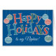 A fun, text-based Happy Holidays card for a Nephew, with Ornaments and Lettering, filled with red, blue and green chevrons and polka dots, outline in white on a bright blue background. There is also a custom front card with this design in case you can't find a card for the specific recipient you're looking for.