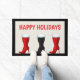 Fun Christmas doormat with Happy Holidays and fashion high heel Christmas boots.