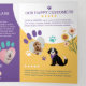 The perfect marketing brochure for your pet care services business. We've illustrated these cute and adorable animals. The cute little animals are wearing different colour handkerchiefs with a lovely garden of florals nestled around them. The cute little animal characters are perfect for representing a pet sitter, pet groomer, pet care, pet adoption, veterinarian and so much more! Colourful background with call-out sections to feature about, about you etc. All illustrations are hand-drawn original artwork by Moodthology.