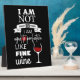 Fun black on a plaque with an easel. "I am not old, I am aged to perfection like fine wine". Wine themed age quote. Black with white typography in several different coordinating fonts with deep red accents, modern design. These will make a great gift for the wine lovers in your life.