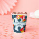 Fun Jigsaw Puzzle Motto Custom Accent Image 8oz Paper Cups, feature a partial close-up of jigsaw puzzle pieces with a custom image on top, adding a personal touch. Replace it to set an accent or to reflect the party theme. In the center is a placeholder for the sample text "Happy Birthday, Jayden! and the party celebration date". Any unwanted text placeholder leave empty. All elements are color customizable.
