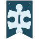 Fun Jigsaw Puzzle Pieces Happy Birthday Blue Bunting Flags feature a jigsaw puzzle piece with a custom image on top, adding a personal touch. It can be used to feature the puzzle theme. The rest of the flags spell the word "Happy Birthday", each flag holding one letter.