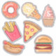 These die-cut stickers are perfect for junk food lovers. Our junk food sticker set features seven our our own hand-drawn cartoon style junk food items including a burger, fries, doughnut, ice cream, hotdog, ice cream cone, and a slice of pizza. The stickers are personalized with name and monogram for a unique personalized look. These fun cartoon style junk food stickers are perfect for decorating and personalized your stuff, scrapbooking and more! All artwork illustrations hand-drawn by Moodthology.