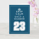 Fun keep calm quote custom 23rd Birthday card. Fun Keep Calm and Carry On quote for 23 year old. Make your own age specific spoof with custom number. Cute greeting card idea for men or women. Modern typography template with crown. Blue or custom colour. Personalize with message inside.