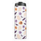 This design features a playful and colourful Halloween pattern with a minimalist design. The pattern includes simple, rounded shapes of jack-o'-lanterns, ghosts, skulls, and bats, all scattered across a white background. The colour palette is soft yet vibrant, with pumpkins in shades of orange, ghosts in pale peach, skulls in lavender, and bats in deep purple. Each element has a cute and friendly expression, making the pattern fun and lighthearted, perfect for Halloween decorations or kids' party themes. The overall design is cheerful and festive, capturing the whimsical side of Halloween.