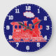 Original stream train graphic boys wall clock. A perfect gift for a young train enthusiast. Customize with your own short name or nickname on the trains loco plate.