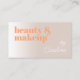 Beautiful elegant minimalist style artistic makeup artist business card. Contemporary light neutral taupe ivory beige brown coloured business card with a modern retro and minimalist sunny summer orange and sophisticated classy white font. Click on 'Personalize' to find the template ready to be customized with your unique business name, profession and contact information, text and QR code of your choice. This particular pretty and unique design was made for those who like sophisticated classic strong designs.
