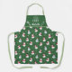 Fun green family matching apron featuring a lovely pattern with cute snowmen with red and light blue scarfs and red and black hats, decorated with snowflakes. The caption on the upper part, decorated with stylized whisk, chef hat, and rolling pin, reads Chef in white lettering and is customizable with your name.