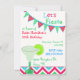 Fun adult's birthday party invitation done in a colourful Mexican theme. Colourful graphics of a pink, turquoise, and green pennant banner, a matching chevron pattern, and a yummy looking margarita drink, decorates the festive invitation. Multi-coloured text is fully customizable and ready to personalize for your event.