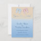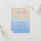 A fun, modern Wedding Save the Date announcement that has a relaxed, beach resort feel. Simulated sand and surf provide the background to pretty blue and pink flip flop sandals at the top of the card.
