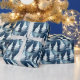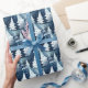 This modern holiday gift warpping paper features a cute blue and white abstract Christmas tree pattern. It has a contemporary yet simple, whimsical look, perfect for wrapping festive Christmas presents or stocking stuffer gifts.