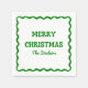 Celebrate the holiday season with these chic "Merry Christmas" napkins, designed for a refined and personalized touch at your holiday gatherings. Featuring a festive green wavy border and customizable family name text, these napkins bring a blend of classic charm and contemporary style to your table decor. Perfect for Christmas dinners, family gatherings, or festive parties, they effortlessly add a festive elegance to any celebration. Personalize with your family name to create a memorable holiday accent that guests will love. Ideal for those looking for an elegant, unique holiday touch.