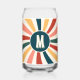 Retro pattern monogrammed can glass. Personalize with the inclusion of your choice of monogram initial which will appear on the front and back. For use at home or an event. As a gift for any occasion.