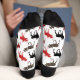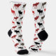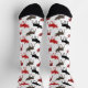 There's moose on the loose on these cute pattern socks! The silhouette moose images are in black, gray, maroon red and bright red. The images are placed on a white background.