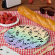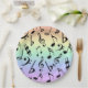 An array of black musical notes on soft pastel rainbow party plates. Great for music lover parties! Matching napkins available. Designed by Heard_, and 369.