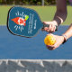 Fun MY HEART BELONGS TO PICKLEBALL Gnome Pickleball Paddle in BLUE for men and women who love playing pickleball. The design shows a gnome holding a red heart, with pickleball balls at his feet. Underneath the main text, there is a CUSTOMIZABLE placeholder name, so you can replace with your name, team name or tournament, etc. Designed for pickleball moms, dads and friends who like playing regional, national and international pickleball tournaments together. Buy one for each person on your team or in your family and personalize with their names. Or why not buy a collection in different colours? You can change the background colour by clicking Edit This Design. Choose from a selection of pickleball designs by Berean Designs.
