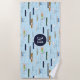 Let's anchor at the island beach for a swim! This unique boating themed monogrammed beach towel features a pattern of varied size seafaring vessels on a light blue background - the pattern includes 2 cargo ships, 2 sailing vessels, 2 antique-style wood boats, 1 fishing boat, a rowboat and a houseboat - close inspection of the pattern reveals people enjoying a day on the river - "A Day On the River" © katz_d_zynes 2020