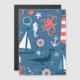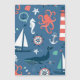 This fab design features a nautical theme with tons of sea life, lighthouses, whales, anchors & nautical flags on a dark blue background.