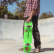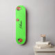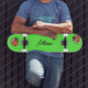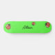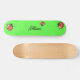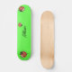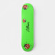 Neon green skateboard featuring red ladybugs in watercolor. It’s very easy to customize, with your personal details.