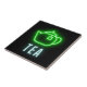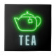 Fun decorative tile design features neon green teapot with "Tea" neon text on black background