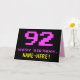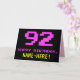 Fun, Nerdy, Geeky, Pink, 8-Bit Style 92nd Birthday Card