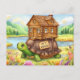 Send a charming announcement with our unique New Address postcard featuring a delightful illustration: a cozy home perched snugly atop a turtle's back, ambling leisurely through a picturesque field by a serene pond. This whimsical image perfectly captures the feeling of moving at your own pace and finding tranquillity in new surroundings.