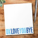 Add a sweet, personal touch to your notes with this fun, customizable notepad! Featuring the playful phrase "ok love you bye" in bold, alternating navy and sky blue, this notepad is perfect for leaving romantic little reminders. Choose from a variety of colours, backgrounds, and personalize with a name or phrase to make it uniquely yours. Whether you're looking for romantic gifts for your boyfriend or simply want a personalized notepad for yourself, this design is sure to bring a smile with every note!