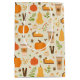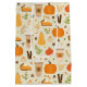 This design showcases a delightful fall-themed pattern filled with cozy autumn elements. The design includes illustrations of pumpkins, slices of pumpkin pie topped with whipped cream, warm fall beverages in to-go cups, and butternut squash. Scattered among these are cinnamon sticks, star anise, sprigs of greenery, autumn leaves, acorns, and small berries, all set against a soft cream background. The pattern exudes a warm and inviting atmosphere, perfect for celebrating the flavours and colours of the autumn season.