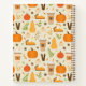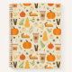 This design showcases a delightful fall-themed pattern filled with cozy autumn elements. The design includes illustrations of pumpkins, slices of pumpkin pie topped with whipped cream, warm fall beverages in to-go cups, and butternut squash. Scattered among these are cinnamon sticks, star anise, sprigs of greenery, autumn leaves, acorns, and small berries, all set against a soft cream background. The pattern exudes a warm and inviting atmosphere, perfect for celebrating the flavours and colours of the autumn season.